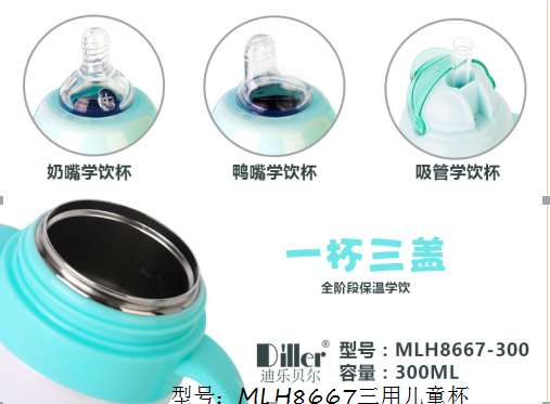 型号:MLH8667三用儿童杯 (一杯三盖,礼盒套装) 容量:300ml