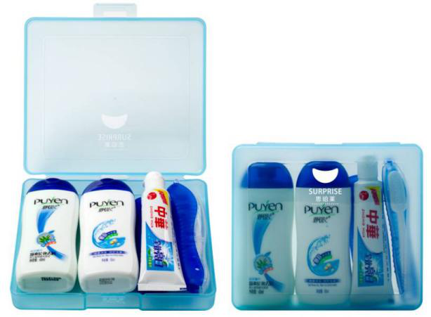 幸福时光套装产品配置:飘影洗发露60ml+飘影沐浴露60ml中华牙膏30g+思珀莱三折便携式牙刷思珀莱双折叠梳子思珀莱抗压透明塑料盒(2色可选)装箱数: 90套/ 箱产品尺寸:12.2×14.2×3cm 零售价:24.99元 lopinv: 15.75元