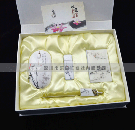 产品配置:无线鼠标+U盘验钞点烟器+名片盒+书签
