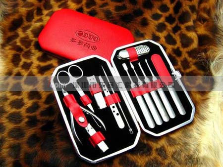 美甲86号(高档红色仿真皮典雅修甲套装,不锈钢12件套)